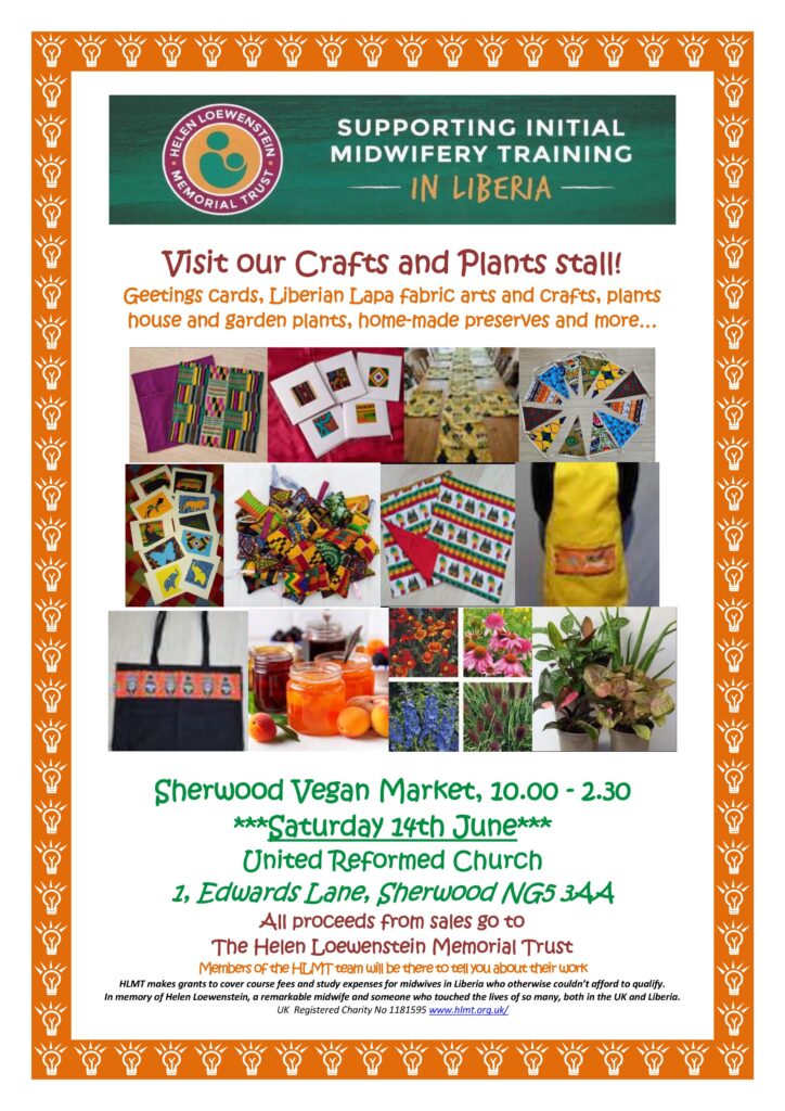 The Helen Loewenstein Memorial Trust brought their stall to Sherwood Vegan Market in Sherwood, Nottingham, with greetings cards, Liberian Lapa fabric arts and crafts, plants house and garden plants, home-made preserves and more.